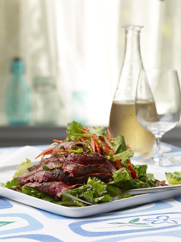 A sweet and sour Asian-style vinaigrette does double-duty here as a marinade for the beef and as a salad dressing. Add some roasted peanuts for an additional touch of Thai flavor.