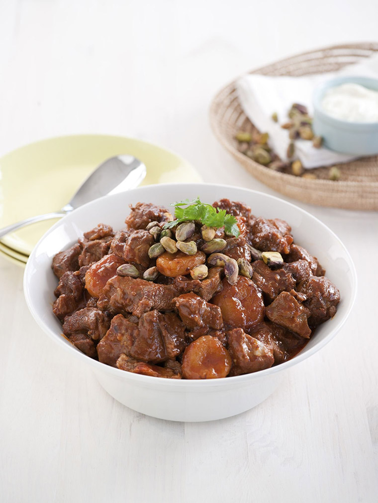 Serve immediately with a dollop of yogurt, sprinkling of pistachio kernels and couscous on the side.