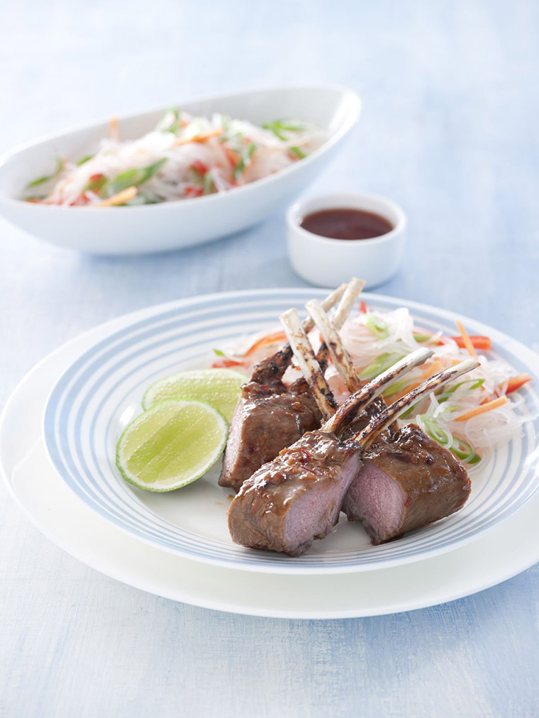 Place the sweet chili sauce in a large non metallic bowl with the lime juice, oil, ginger and soy. Stir until combined then add the goat racks and coat in the marinade. Cover and refrigerate up to 3 hours.