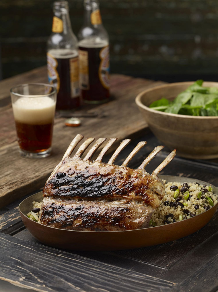 Mustard and Belgian beer make for a piquant marinade on Aussie rack of lamb. Serve these two per person with salad and grilled vegetables. Or, pass them as lollipop-style finger food at a cocktail party.